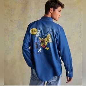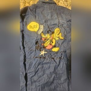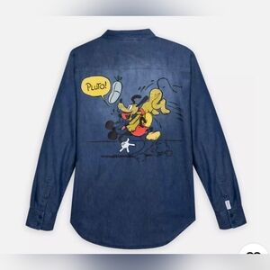 Vintage Disney Parks Her Universe Mickey and Pluto Comic Denim Shirt. Xl