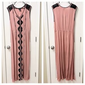 Boho Southwest Embroidered Maxi Dress in Dusty Rose