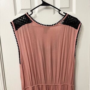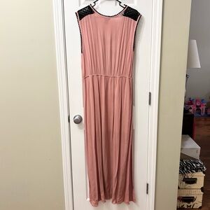 Rue 21 pink maxi dress with black geometric accents. Women’s size XL Sleeveless design. Perfect for casual outings. Good preowned condition.