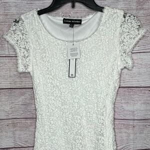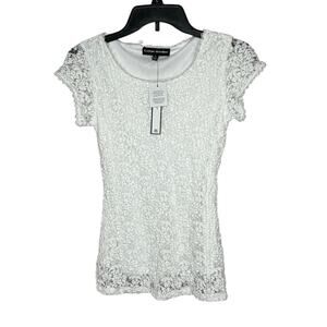 Catherine Malandrino White Lace Y2K Trendy Crinkle Short Sleeve Top Size XS New
