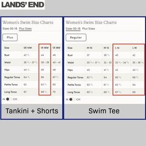 Plus 3-Piece Lands’ End Swim Set 16W/L — Tankini Rash Guard Board Shorts
