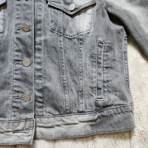 Women's Denim Jean Jacket Gray Distressed faded Cropped Collared LEVI STRAUSS