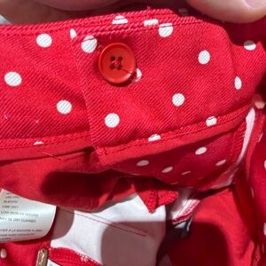 Free People size 10. Vibrant red fabric with playful white polka dots. Eye-catching and fun design.