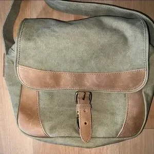Vintage L.L. Bean Green and Tan Crossbody Messenger Bag, Like New!!