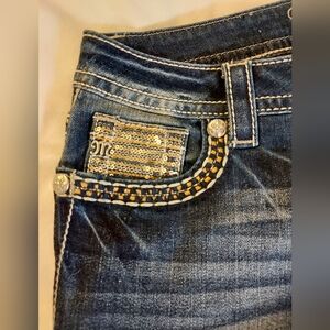 Miss Me Dark Blue Signature Straight Jeans with Embellished Pockets -27x33