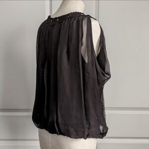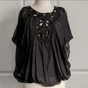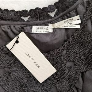 Leon Max Blouse 100% Silk Sleeveless Embroidered Sheer Overlay Lined Black L NWT