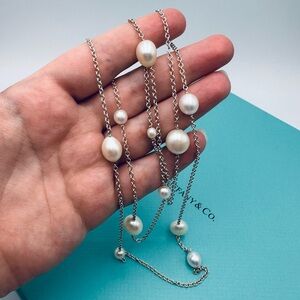 RARE 36” Tiffany & Co. Pearls by the Yard Sprinkle Necklace in Silver Packaging