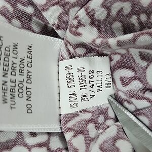 This gently used Banana Republic Heritage Collection dress in size medium from Fall 2013 features a striking abstract animal print in deep burgundy and white. Designed with a classic sleeveless silhouette and a polished crew neckline, it offers a tailored fit perfect for professional office settings or evening social events. The high-quality fabric blend provides a slight stretch for comfort, while the concealed back zipper ensures a seamless look. This versatile piece pairs beautifully with a blazer for the boardroom or statement jewelry for a dinner date.