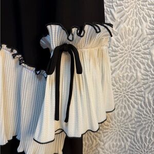 This chic women's blouse features a striking black and white design. Perfect for adding a touch of elegance to your wardrobe.