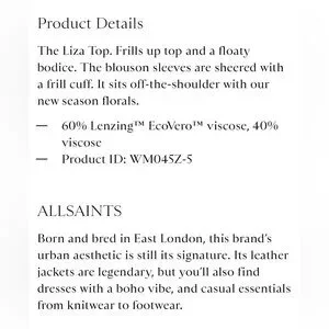 🆕 ALL SAINTS Liza Peggy Top Off The Shoulder Blouse