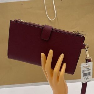 MICHAEL KORS LG DOUBLE ZIP WRISTLET MERLOT DARK CHERRY MULBERRY PHONE CASE NWT