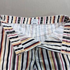 RVCA shorts, striped shorts, surf style, skate style, beach shorts, retro stripes, summer shorts, casual shorts, coastal style, boho surf, festival outfit, warm weather, vacation wear, California cool, laid back style