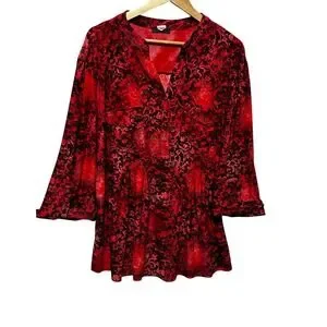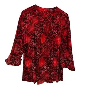 Verarose Women Blouse XL Red Black Sheer Floral Gothic Fairygrunge Romantic
