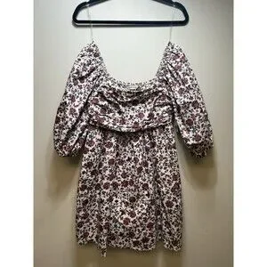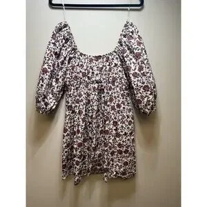 Speechless Rust Ivory Floral Puff Sleeve Mini Boho Cottagecore Pockets Sz S