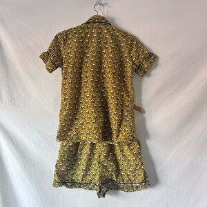 Keva Camel Print Pajama Set Women’s M Mustard Yellow Button Up Shorts
