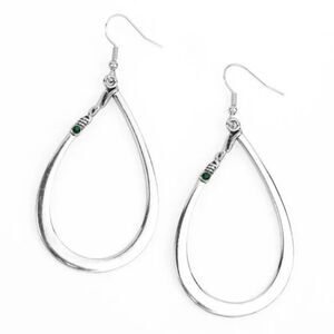 Adorned with a delicate green rhinestone, a gorgeous silver teardrop frame dangles playfully from your ear. These earrings effortlessly hook onto your ears, making them perfect for everyday wear.