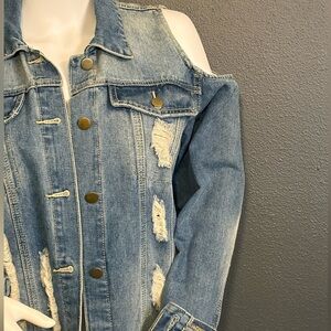 Distressed Denim Jacket Cutout Shoulder Sz Medium