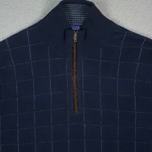 Alan Flusser Blue Check Quarter Zip Pullover Sweater Sweatshirt Adult Size Large