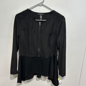 Style & Co Zip Up Jacket Womens Medium Petite Black Faux Suede Peplum Goth