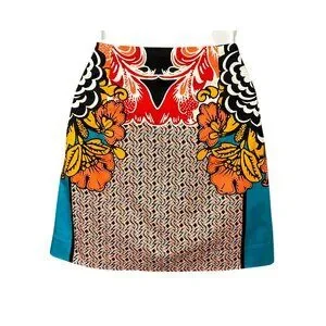 This vibrant mini skirt from Express features a striking mixed pattern design. Crafted for durability and style, it offers a comfortable fit with a cotton-spandex blend and a secure side zipper.
