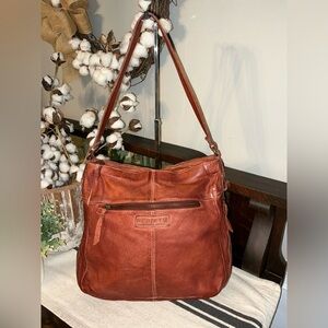 Bed Stu Leather Moore Studded Hobo Shoulder Bag Handbag Cognac Rustic MSRP $285