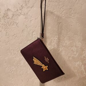 Elegant Coach wristlet in a stunning burgundy shade, featuring a charming star design. Perfect for adding a touch of style to any outfit. NWOT