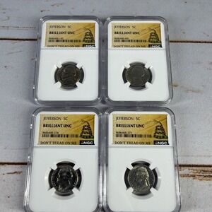 4× 2025 Jefferson Nickel NGC RD Don't Tread On Me Label – Used