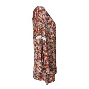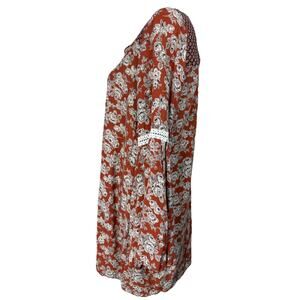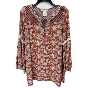 Women's Tunic Top Sz M Brown Floral 3/4 Sleeves Boho Cottagecore Hippie