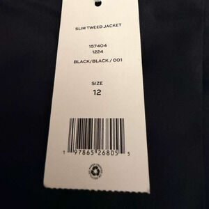 Tory Burch Slim Tweed Jacket Black Gold Logo Button Size 12 New With Tags