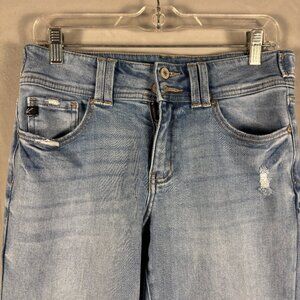 KanCan Mid Rise Bootcut Jeans Women’s Double Button Frayed Hem Denim