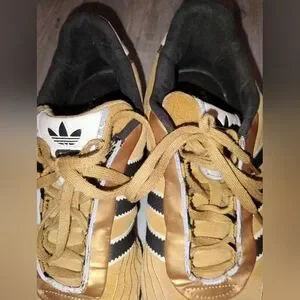 Sleek Goodyear athletic shoes in tan and black. Perfect for sports and casual outings. I've glued the sole back in place.