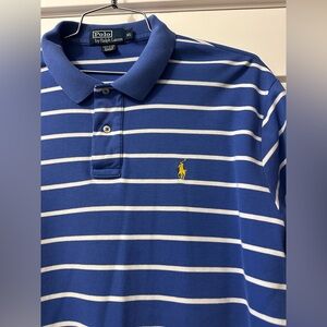 Polo Ralph Lauren Polo Shirt Mens XL Blue White Striped Yellow Pony Short Sleeve