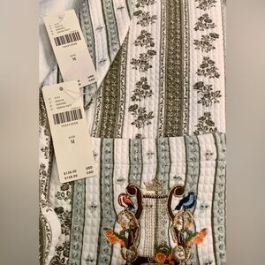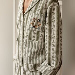 Matching Set-Printed Quilted Pajama Top & Jogger Pants Anthropologie-Green Motif