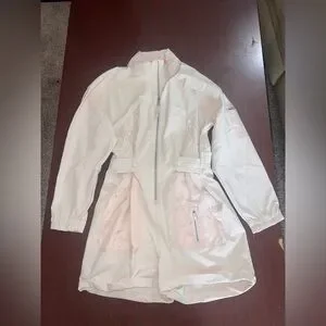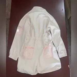 Stylish cream/pink jumpsuit featuring a front zipper and pockets. Perfect for casual outings.
