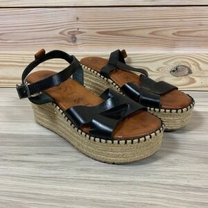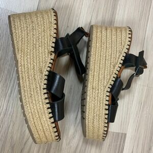 Musse & Cloud Anthropologie Sandal 39 Wedge Black Leather Platform Espadrille