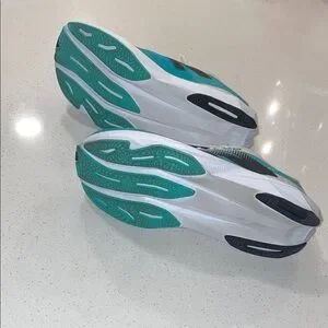 Vibrant aqua and white design. Ideal for running and everyday comfort.