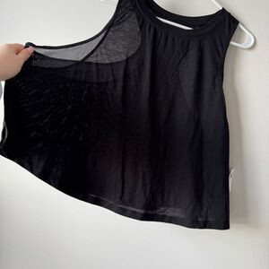 Elevate your wardrobe with this sleek black sleeveless top. Perfect for working out or as a cover up, it offers a stylish and comfortable fit.
