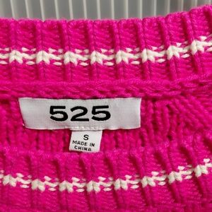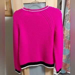 women's 525 Pink white and black knit cotton sweater. the color in the photos makes the pink seem brighter than it is. its a deep pink fuchsia color - very pretty and 100% Cotton