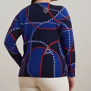 NWT Women Plus RALPH LAUREN Spring Beach Nautical Coastal Print light Sweater 2X