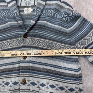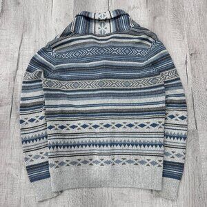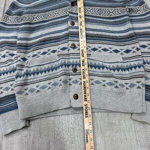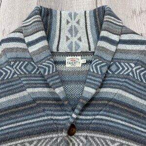 Faherty Cardigan Mens Large Blue Aztec Sweater Shawl Neck Soft Button Front