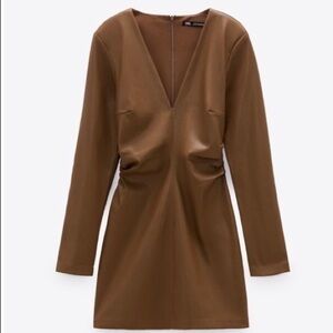 NWT size Small ZARA faux leather dress long sleeves v neck