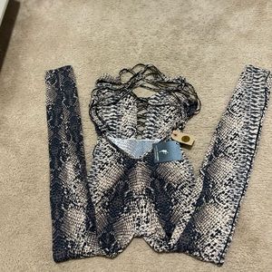 Stylish snake print jumpsuit with a chic design. Perfect for a bold fashion statement.