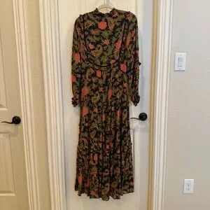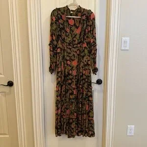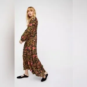Flowy printed maxi dress with a romantic feel featuring ruffled accents and and oversized, shapeless fit.