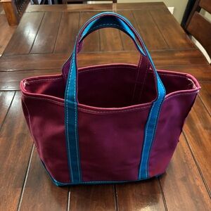 Vibrant rare color and even more rare pristine condition vtg L.L. Bean Boat and Tote with purple plum and teal blue color. Cream colored stitching. Enjoy this iconic tote Made in USA. Size medium - see measurements in photos. Regular size straps. 100% cotton heavy duty canvas. No rips, tears or stains. No monogram.
