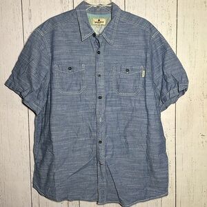 Woolrich 100% Cotton Heather Blue Short Sleeve Button Down Size XL
