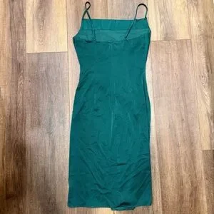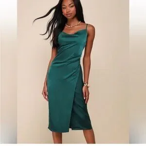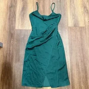 Lulus Hollywood Forest Green Satin Midi Dress Women's Size medium