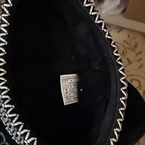 UGG Black Suede Tasman Slip-Ons with White Trim