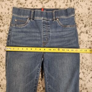 Spanx SZ M Blue Pull On Stretch Flared Retro Jeans Pants High Rise