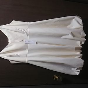 Mid weight stretch slubbed weave, fixed shoulder straps, bubble hem. Hook-and-eye & hidden zip at back. On-seam hip pockets, lined. 60% cotton, 40% poly. NWT. SIZES 6, 10.