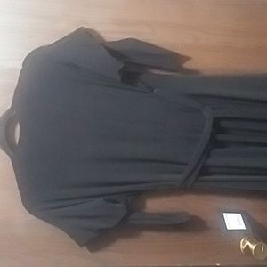 Lightweight luxe jersey, wrap silhouette w/ waist tie. Layered dolman sleeves, pull-on design, no closure. 95% poly, 5% spandex. NWT. Size XS.